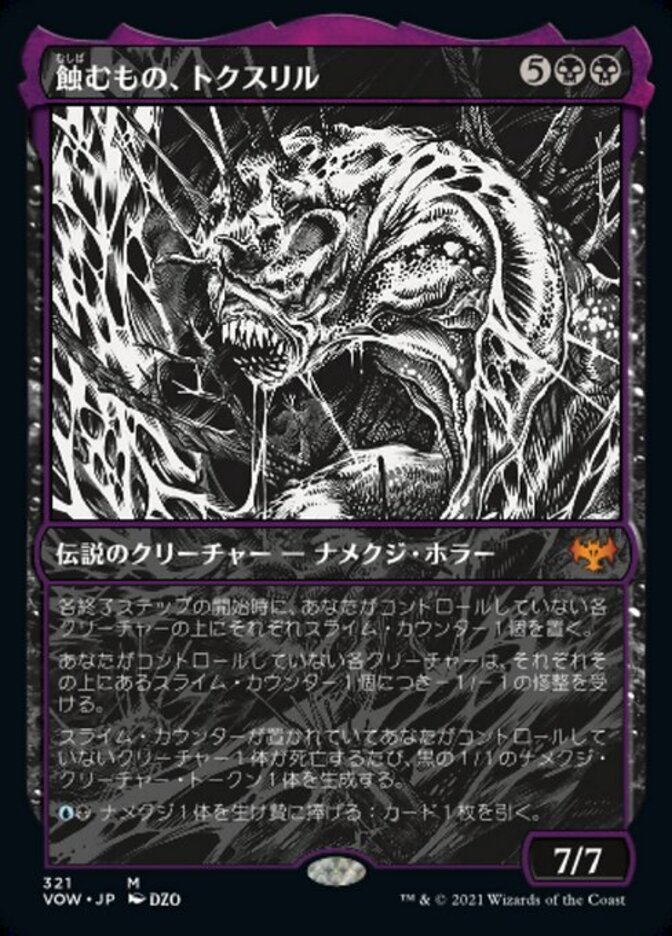 | Rules | At the beginning of each end step, put a slime counter on each creature you don't control. Creatures you don't control get -1/-1 for each slime counter on them. Whenever a creature you don't control with a slime counter on it dies, create a 1/1 black Slug creature token. , Sacrifice a Slug: Draw a card. |