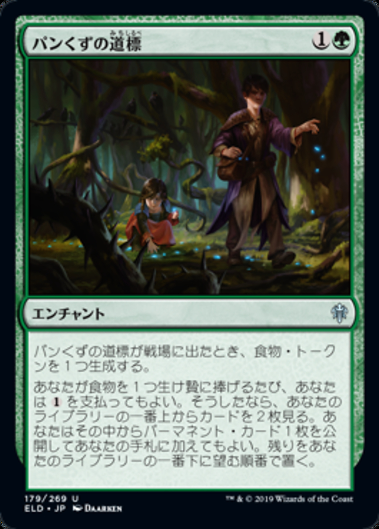 | Rules | When Trail of Crumbs enters the battlefield, create a Food token. (It's an artifact with ", , Sacrifice this artifact: You gain 3 life.") Whenever you sacrifice a Food, you may pay . If you do, look at the top two cards of your library. You may reveal a permanent card from among them and put it into your hand. Put the rest on the bottom of your library in any order. |
