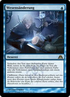 | Rules | Change the text of target permanent by replacing all instances of one color word with another or one basic land type with another until end of turn. Cipher (Then you may exile this spell card encoded on a creature you control. Whenever that creature deals combat damage to a player, its controller may cast a copy of the encoded card without paying its mana cost.) |