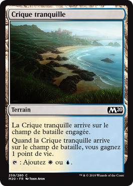 | Rules | Tranquil Cove enters the battlefield tapped. When Tranquil Cove enters the battlefield, you gain 1 life. : Add or . |