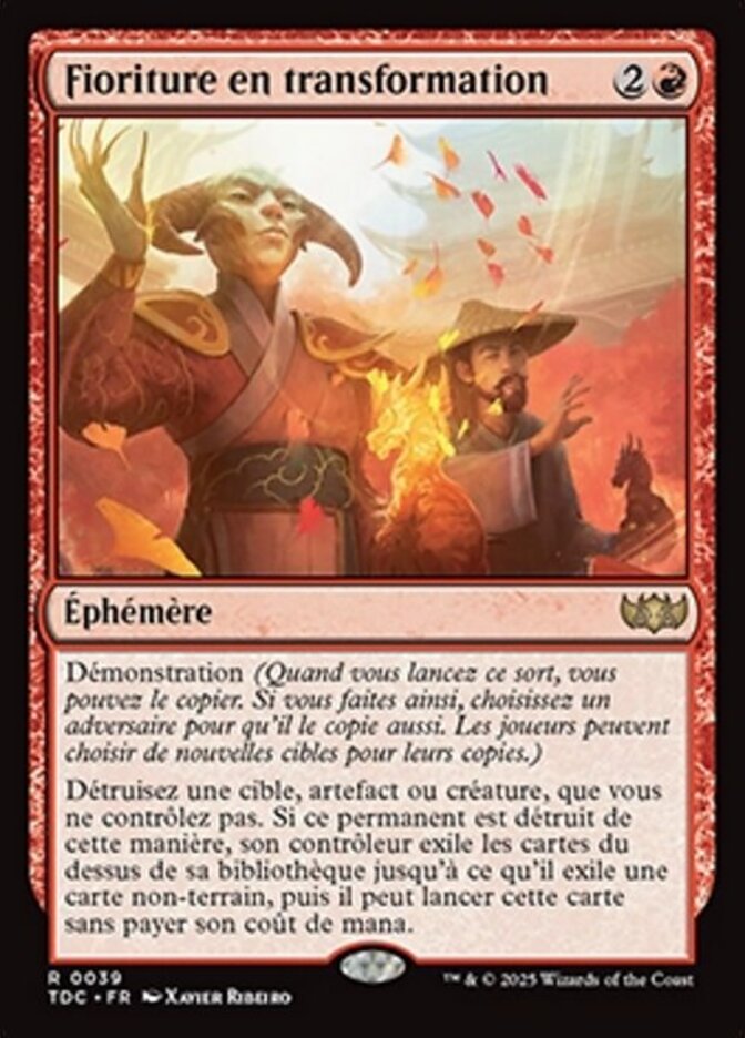 | Rules | Demonstrate (When you cast this spell, you may copy it. If you do, choose an opponent to also copy it. Players may choose new targets for their copies.) Destroy target artifact or creature you don't control. If that permanent is destroyed this way, its controller exiles cards from the top of their library until they exile a nonland card, then they may cast that card without paying its mana cost. |