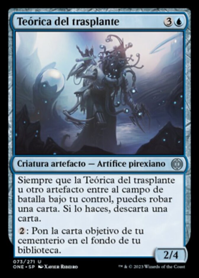 | Rules | Whenever Transplant Theorist or another artifact enters the battlefield under your control, you may draw a card. If you do, discard a card. : Put target card from your graveyard on the bottom of your library. |