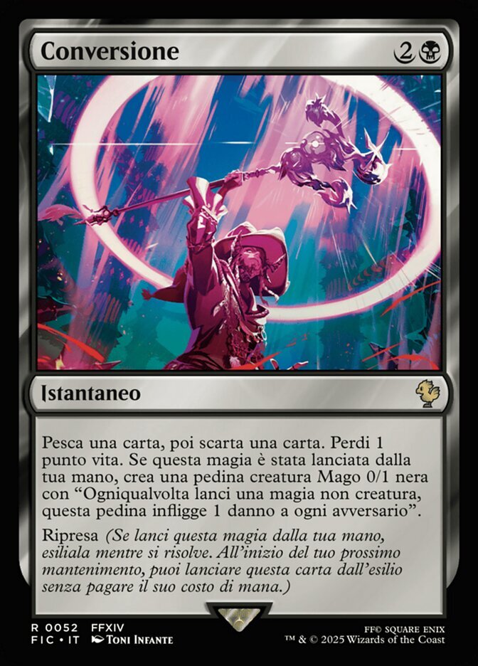 | Rules | Draw a card, then discard a card. You lose 1 life. If this spell was cast from your hand, create a 0/1 black Wizard creature token with "Whenever you cast a noncreature spell, this token deals 1 damage to each opponent." Rebound (If you cast this spell from your hand, exile it as it resolves. At the beginning of your next upkeep, you may cast this card from exile without paying its mana cost.) |
