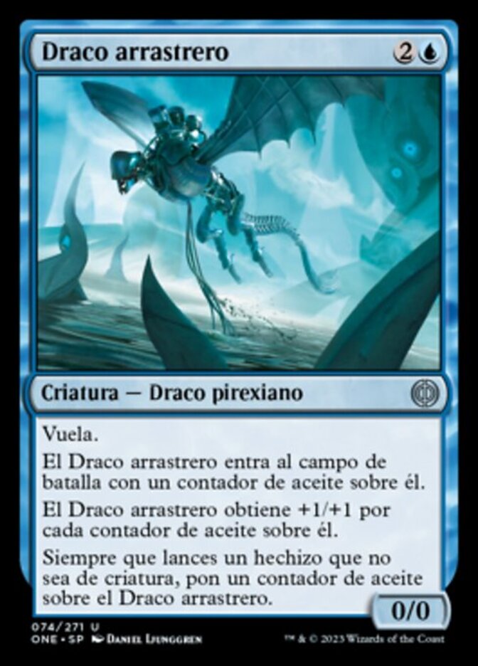 | Rules | Flying Trawler Drake enters the battlefield with an oil counter on it. Trawler Drake gets +1/+1 for each oil counter on it. Whenever you cast a noncreature spell, put an oil counter on Trawler Drake. |