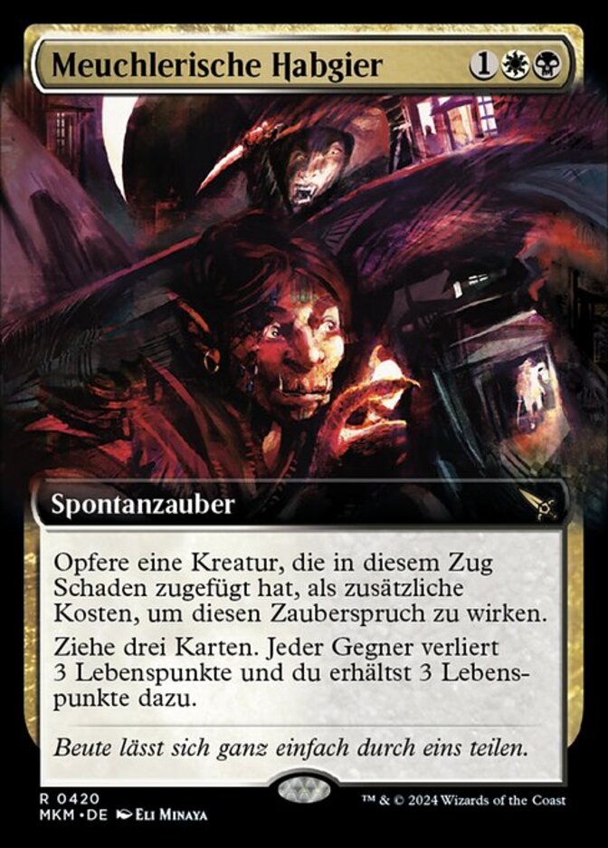 | Rules | As an additional cost to cast this spell, sacrifice a creature that dealt damage this turn. Draw three cards. Each opponent loses 3 life and you gain 3 life. |