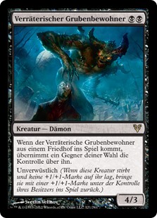 | Rules | When Treacherous Pit-Dweller enters the battlefield from a graveyard, target opponent gains control of it. Undying (When this creature dies, if it had no +1/+1 counters on it, return it to the battlefield under its owner's control with a +1/+1 counter on it.) |