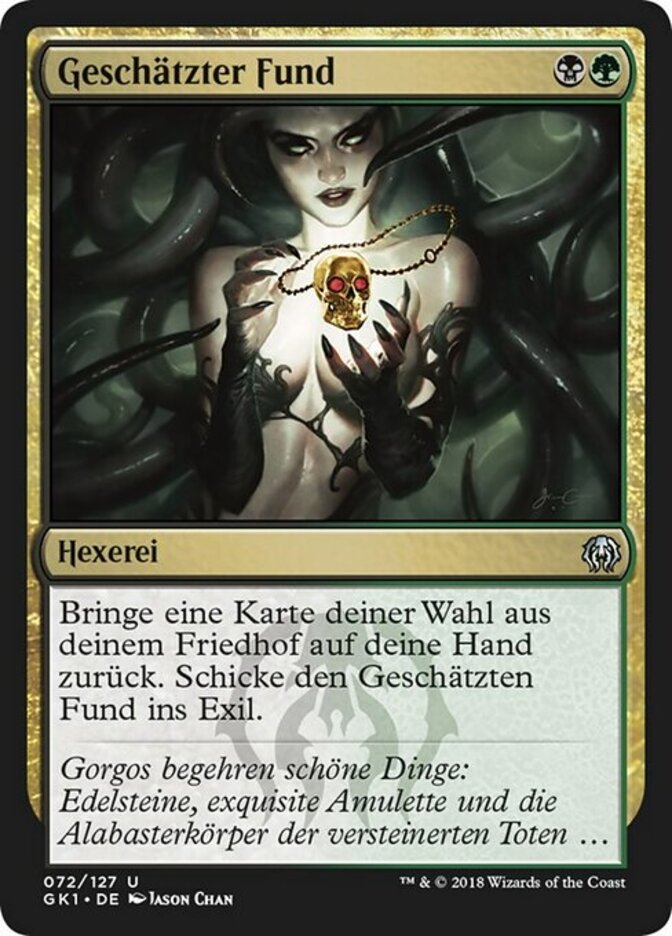 | Rules | Return target card from your graveyard to your hand. Exile Treasured Find. |
