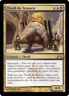 | Rules | Extort (Whenever you cast a spell, you may pay . If you do, each opponent loses 1 life and you gain that much life.) Whenever Treasury Thrull attacks, you may return target artifact, creature, or enchantment card from your graveyard to your hand. |