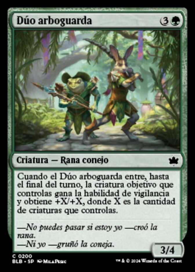 | Rules | When Treeguard Duo enters, until end of turn, target creature you control gains vigilance and gets +X/+X, where X is the number of creatures you control. |