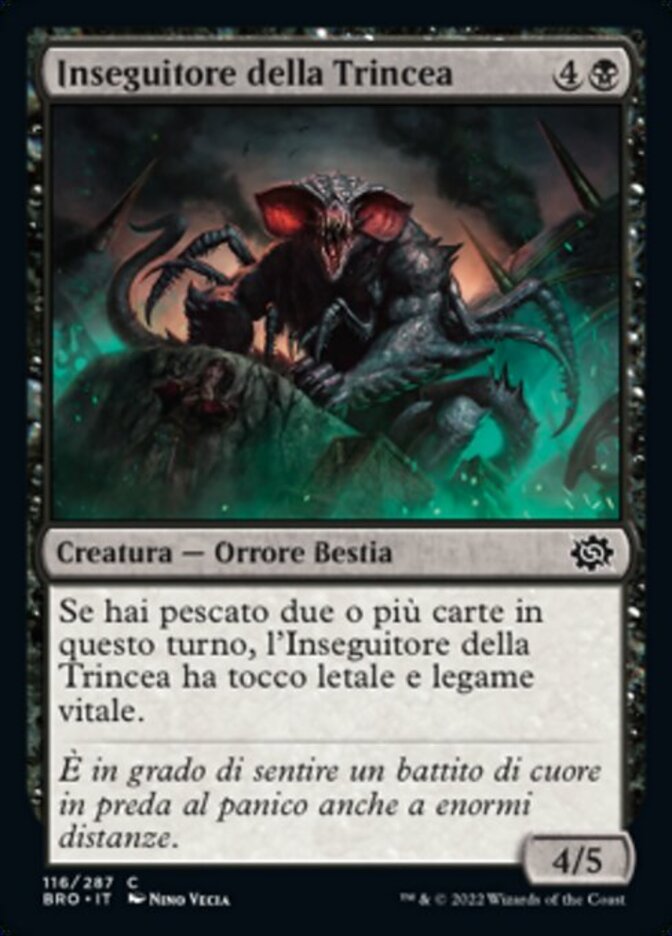 | Rules | As long as you've drawn two or more cards this turn, Trench Stalker has deathtouch and lifelink. |