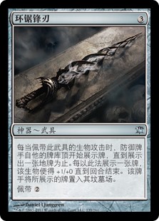 Rules Whenever equipped creature attacks, defending player reveals cards from the top of their library until they reveal a land card. The creature gets +1/+0 until end of turn for each card revealed this way. That player puts the revealed cards into their graveyard.