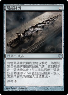 | Rules | Whenever equipped creature attacks, defending player reveals cards from the top of their library until they reveal a land card. The creature gets +1/+0 until end of turn for each card revealed this way. That player puts the revealed cards into their graveyard. Equip |
