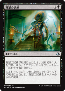 | Rules | When Trial of Ambition enters the battlefield, target opponent sacrifices a creature. When a Cartouche enters the battlefield under your control, return Trial of Ambition to its owner's hand. |