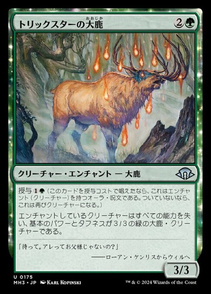 | Rules | Bestow (If you cast this card for its bestow cost, it's an Aura spell with enchant creature. It becomes a creature again if it's not attached.) Enchanted creature loses all abilities and is a green Elk creature with base power and toughness 3/3. |
