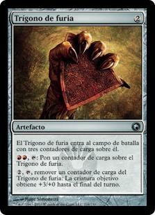 | Rules | Trigon of Rage enters the battlefield with three charge counters on it. , : Put a charge counter on Trigon of Rage. , , Remove a charge counter from Trigon of Rage: Target creature gets +3/+0 until end of turn. |