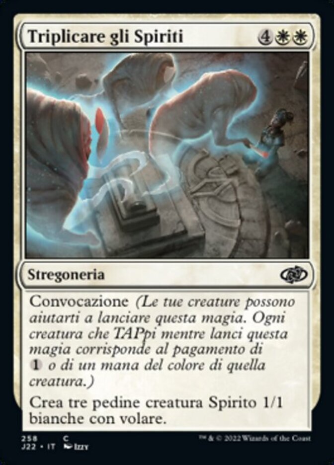 | Rules | Convoke (Your creatures can help cast this spell. Each creature you tap while casting this spell pays for or one mana of that creature's color.) Create three 1/1 white Spirit creature tokens with flying. (They can't be blocked except by creatures with flying or reach.) |
