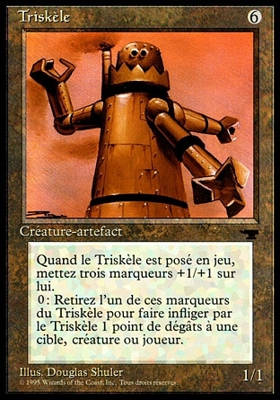 | Rules | Triskelion enters the battlefield with three +1/+1 counters on it. Remove a +1/+1 counter from Triskelion: It deals 1 damage to any target. |