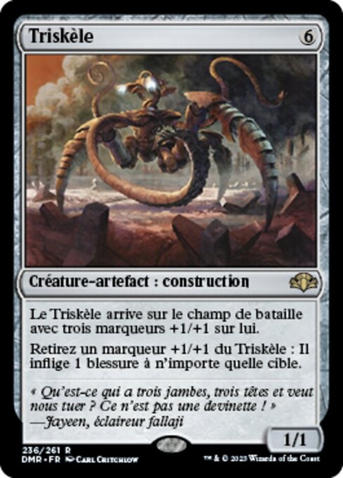 | Rules | Triskelion enters the battlefield with three +1/+1 counters on it. Remove a +1/+1 counter from Triskelion: It deals 1 damage to any target. |