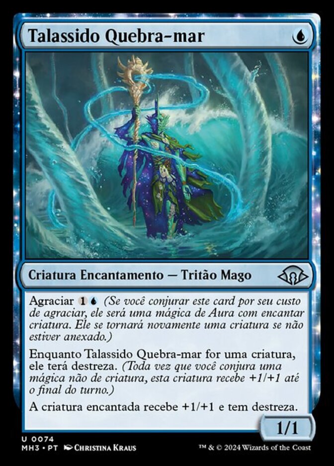 | Rules | Bestow (If you cast this card for its bestow cost, it's an Aura spell with enchant creature. It becomes a creature again if it's not attached.) As long as Triton Wavebreaker is a creature, it has prowess. (Whenever you cast a noncreature spell, this creature gets +1/+1 until end of turn.) Enchanted creature gets +1/+1 and has prowess. |