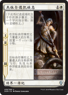 | Rules | (As this Saga enters and after your draw step, add a lore counter. Sacrifice after III.) I, II — Put a +1/+1 counter on target creature you control with the greatest power. III — Target creature you control with the greatest power gains flying, first strike, and lifelink until end of turn. |