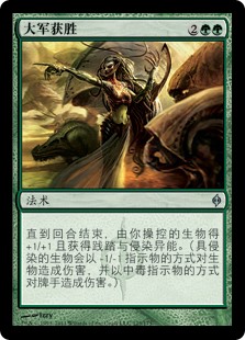 | Rules | Until end of turn, creatures you control get +1/+1 and gain trample and infect. (Creatures with infect deal damage to creatures in the form of -1/-1 counters and to players in the form of poison counters.) |