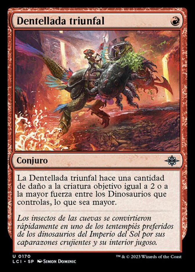 | Rules | Triumphant Chomp deals damage to target creature equal to 2 or the greatest power among Dinosaurs you control, whichever is greater. |
