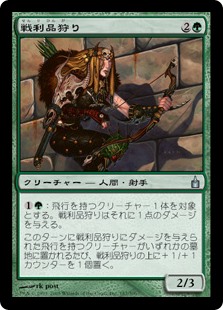 | Rules | : Trophy Hunter deals 1 damage to target creature with flying. Whenever a creature with flying dealt damage by Trophy Hunter this turn dies, put a +1/+1 counter on Trophy Hunter. |