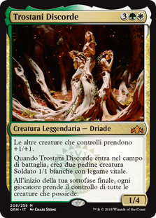 | Rules | Other creatures you control get +1/+1. When Trostani Discordant enters the battlefield, create two 1/1 white Soldier creature tokens with lifelink. At the beginning of your end step, each player gains control of all creatures they own. |