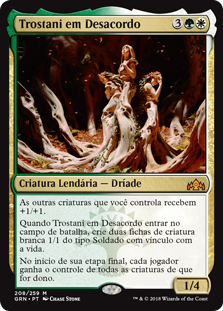 | Rules | Other creatures you control get +1/+1. When Trostani Discordant enters the battlefield, create two 1/1 white Soldier creature tokens with lifelink. At the beginning of your end step, each player gains control of all creatures they own. |