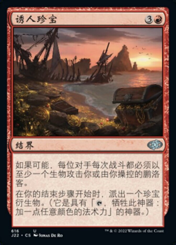 | Rules | Each opponent must attack you or a planeswalker you control with at least one creature each combat if able. At the beginning of your end step, create a Treasure token. (It's an artifact with ", Sacrifice this artifact: Add one mana of any color.") |