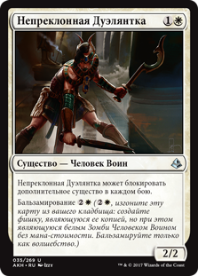 | Rules | Trueheart Duelist can block an additional creature each combat. Embalm (, Exile this card from your graveyard: Create a token that's a copy of it, except it's a white Zombie Human Warrior with no mana cost. Embalm only as a sorcery.) |