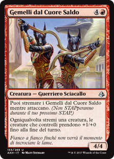 | Rules | You may exert Trueheart Twins as it attacks. (It won't untap during your next untap step.) Whenever you exert a creature, creatures you control get +1/+0 until end of turn. |