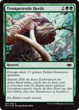 | Rules | Create a 3/3 green Elephant creature token. Rebound (If you cast this spell from your hand, exile it as it resolves. At the beginning of your next upkeep, you may cast this card from exile without paying its mana cost.) |