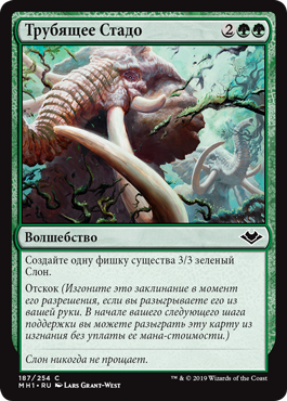 | Rules | Create a 3/3 green Elephant creature token. Rebound (If you cast this spell from your hand, exile it as it resolves. At the beginning of your next upkeep, you may cast this card from exile without paying its mana cost.) |