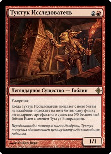 | Rules | Haste When Tuktuk the Explorer dies, create Tuktuk the Returned, a legendary 5/5 colorless Goblin Golem artifact creature token. |