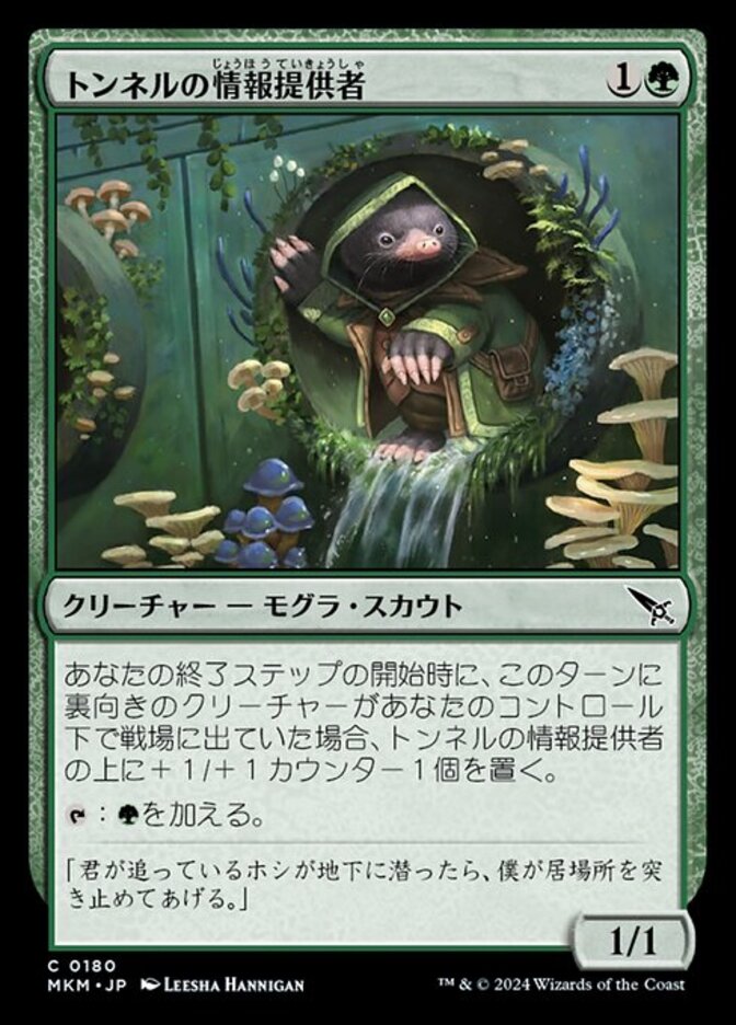| Rules | At the beginning of your end step, if a face-down creature entered the battlefield under your control this turn, put a +1/+1 counter on Tunnel Tipster. : Add . |