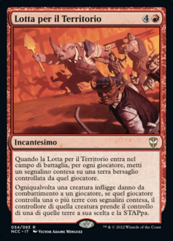 | Rules | When Turf War enters the battlefield, for each player, put a contested counter on target land that player controls. Whenever a creature deals combat damage to a player, if that player controls one or more lands with contested counters on them, that creature's controller gains control of one of those lands of their choice and untaps it. |