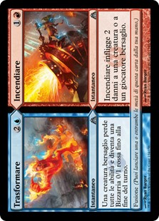 | Rules | Until end of turn, target creature loses all abilities and becomes a red Weird with base power and toughness 0/1. Fuse (You may cast one or both halves of this card from your hand.) // Burn deals 2 damage to any target. Fuse (You may cast one or both halves of this card from your hand.) |