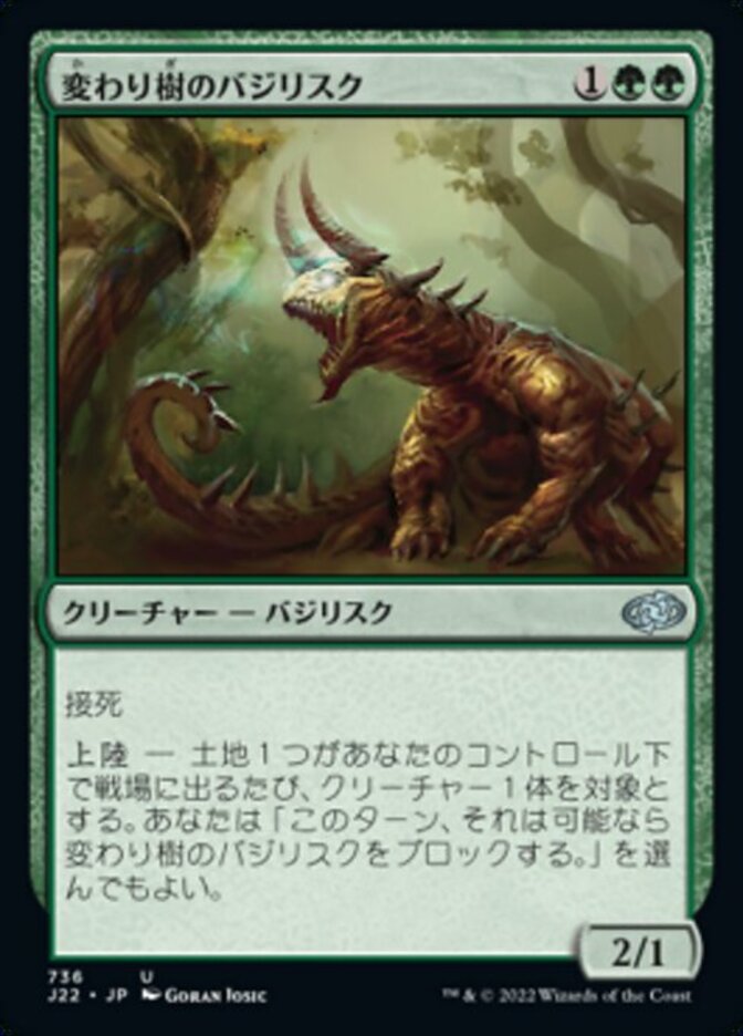 | Rules | Deathtouch (Any amount of damage this deals to a creature is enough to destroy it.) Landfall — Whenever a land enters the battlefield under your control, you may have target creature block Turntimber Basilisk this turn if able. |