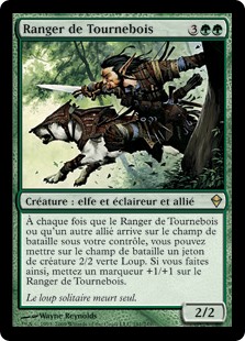 | Rules | Whenever Turntimber Ranger or another Ally enters the battlefield under your control, you may create a 2/2 green Wolf creature token. If you do, put a +1/+1 counter on Turntimber Ranger. |