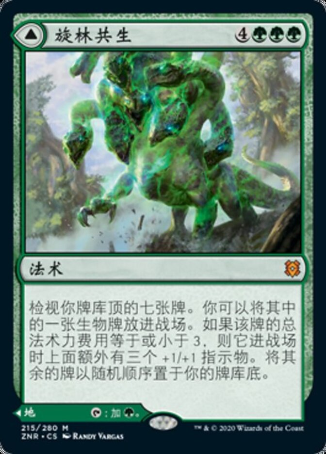 | Rules | Look at the top seven cards of your library. You may put a creature card from among them onto the battlefield. If that card has mana value 3 or less, it enters with three additional +1/+1 counters on it. Put the rest on the bottom of your library in a random order. // As Turntimber, Serpentine Wood enters the battlefield, you may pay 3 life. If you don't, it enters the battlefield tapped. : Add . |