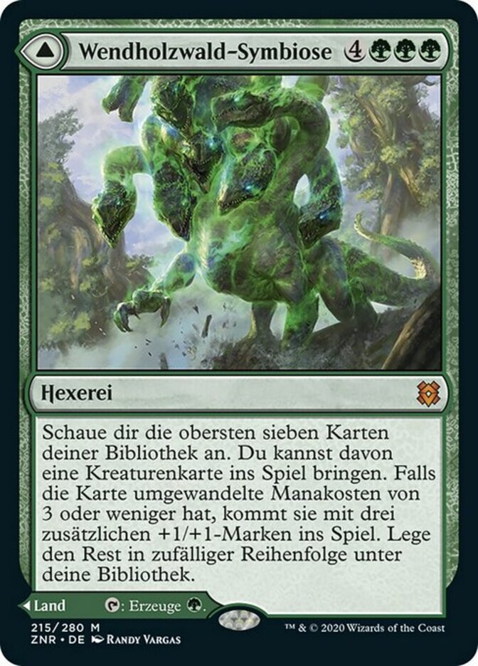 | Rules | Look at the top seven cards of your library. You may put a creature card from among them onto the battlefield. If that card has mana value 3 or less, it enters with three additional +1/+1 counters on it. Put the rest on the bottom of your library in a random order. // As Turntimber, Serpentine Wood enters the battlefield, you may pay 3 life. If you don't, it enters the battlefield tapped. : Add . |