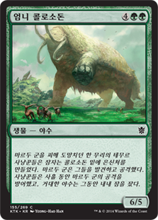 | Flavor | A band of Temur hunters, fleeing the Mardu, dug a hideout beneath such a creature as it slept. The horde found them and attacked. For three days the Temur held them at bay, and all the while the great beast slumbered. |