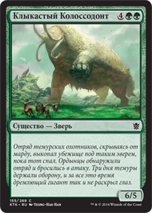 | Flavor | A band of Temur hunters, fleeing the Mardu, dug a hideout beneath such a creature as it slept. The horde found them and attacked. For three days the Temur held them at bay, and all the while the great beast slumbered. |