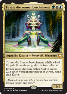 | Rules | Tuvasa the Sunlit gets +1/+1 for each enchantment you control. Whenever you cast your first enchantment spell each turn, draw a card. |