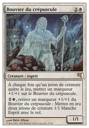| Rules | Whenever a creature token leaves the battlefield, put a +1/+1 counter on Twilight Drover. , Remove a +1/+1 counter from Twilight Drover: Create two 1/1 white Spirit creature tokens with flying. |