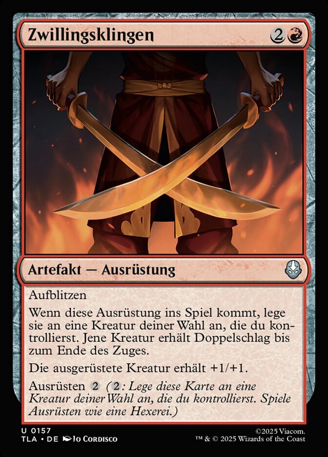 | Rules | Flash When this Equipment enters, attach it to target creature you control. That creature gains double strike until end of turn. Equipped creature gets +1/+1. Equip (: Attach to target creature you control. Equip only as a sorcery.) |
