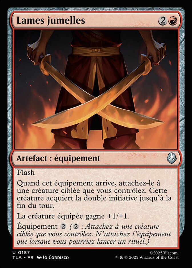 | Rules | Flash When this Equipment enters, attach it to target creature you control. That creature gains double strike until end of turn. Equipped creature gets +1/+1. Equip (: Attach to target creature you control. Equip only as a sorcery.) |