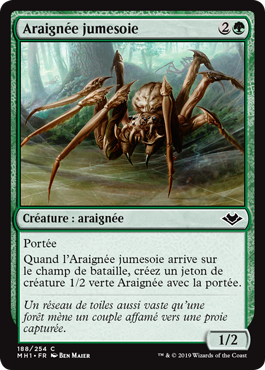 | Rules | Reach When Twin-Silk Spider enters the battlefield, create a 1/2 green Spider creature token with reach. |