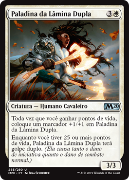 | Rules | Whenever you gain life, put a +1/+1 counter on Twinblade Paladin. As long as you have 25 or more life, Twinblade Paladin has double strike. (It deals both first-strike and regular combat damage.) |
